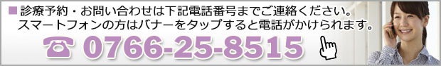 高岡市以外(砺波市・射水市・氷見市など)からの来院で場所がわからない場合、お電話(0766-25-8515)にて道順をご案内致しますので、お気軽にお問い合わせ下さい。